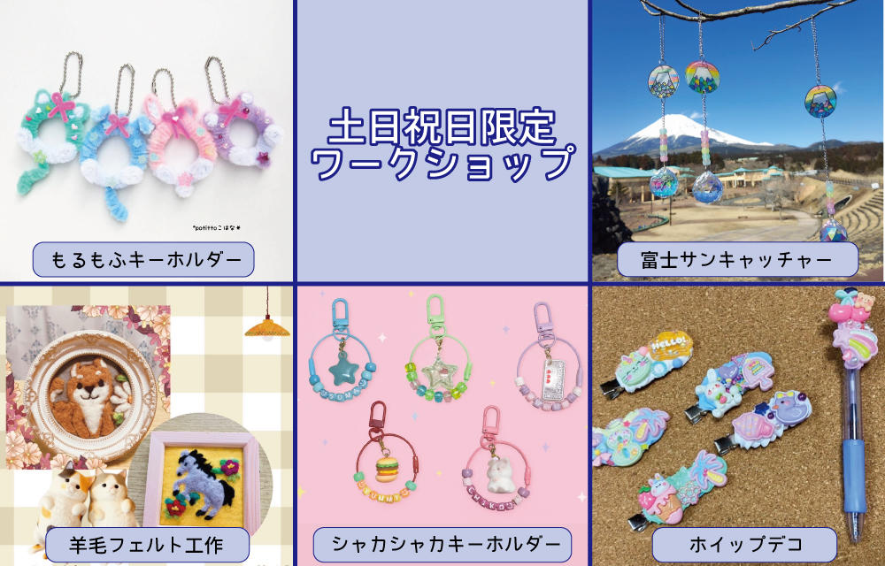 【2月】土日祝日限定ワークショップ「ヘアピンorシャープペンのホイップデコ・ビーズキーホルダー・富士サンキャッチャー・羊毛フェルト工作・もるもふキーホルダー」を開催!