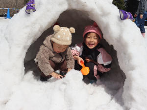 雪だるまやかまくら作りが楽しめる雪遊び広場や、